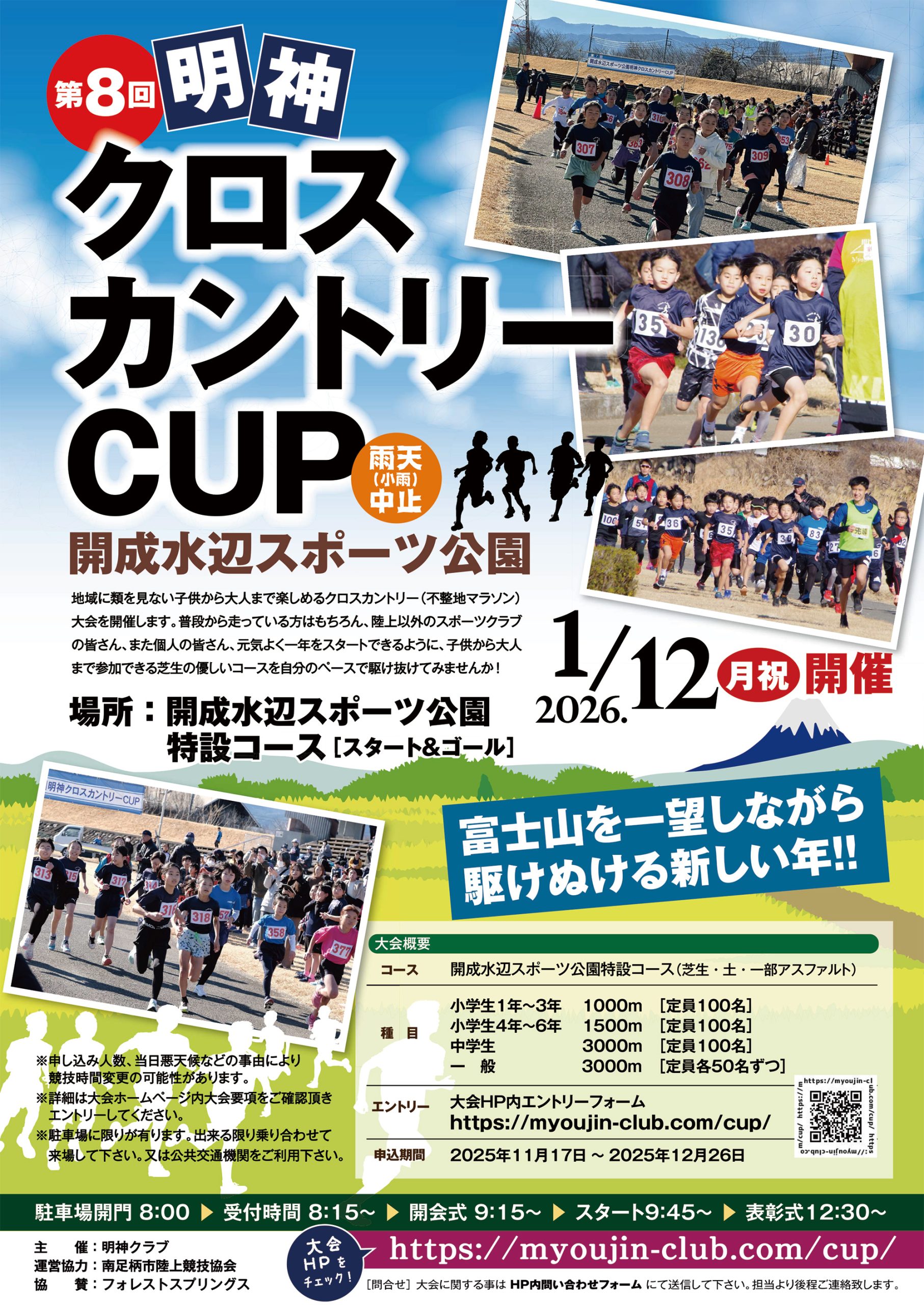 (5)出場者の増減により合同、または安全を考慮し組み分けて行う場合もあります。その場合スタート時刻が変更になる場合があります。当日のアナウンスにご注意ください。